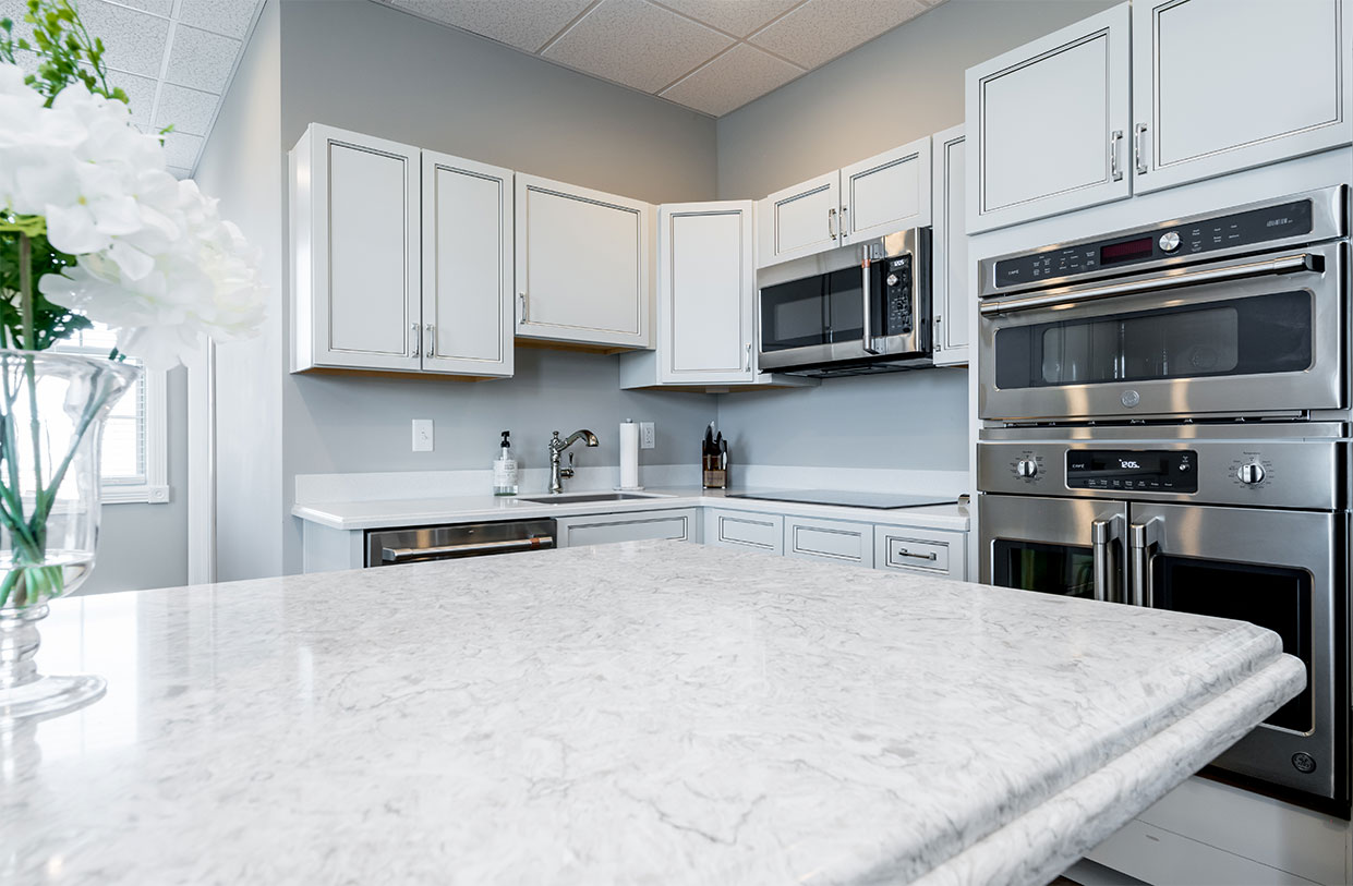 - Full kitchen – stove, oven, convection oven, microwave, refrigerator, pellet ice machine, dishwasher